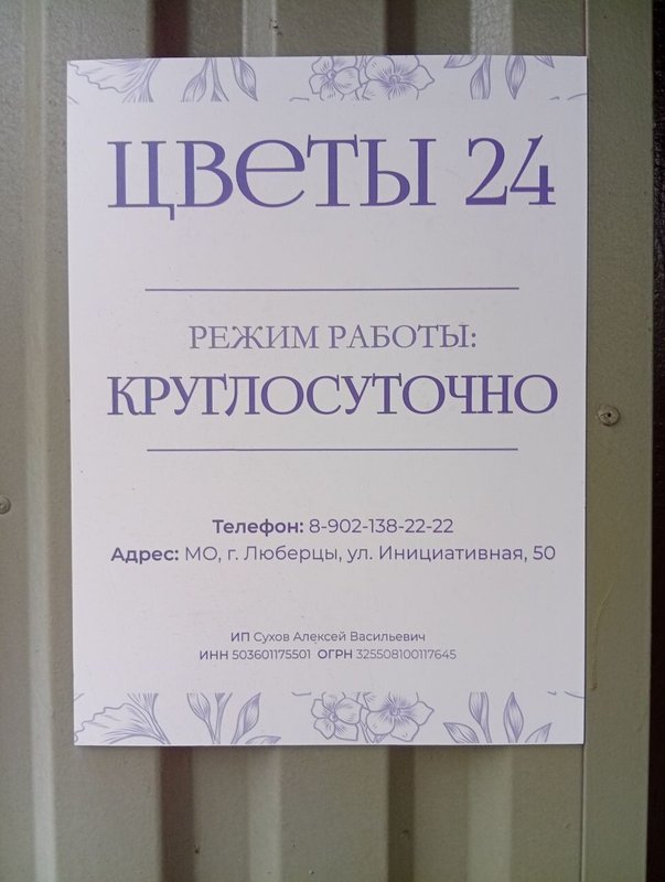 Магазин Цветы 24 на Инициативной улице, 50 в Люберцах